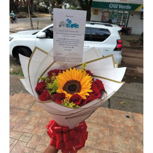 Bouquet de rosas y girasol -floristería Cali
